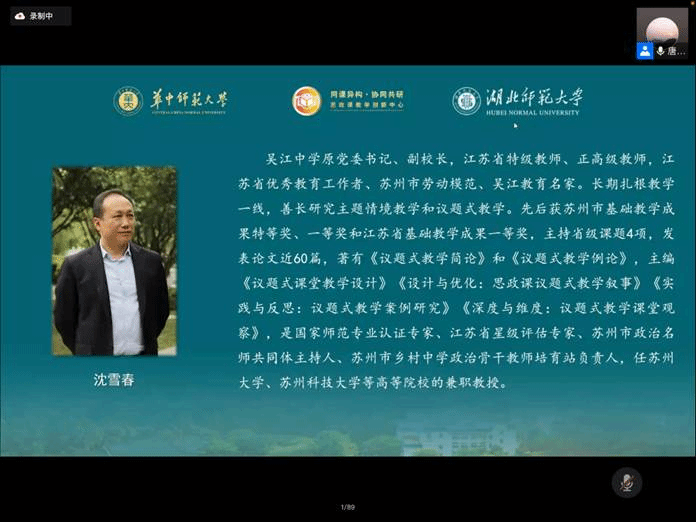 活动第二项,两名中学思政课名师进行课堂实录展示及反思分享