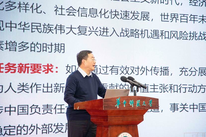 湖北省中国特色社会主义理论体系研究中心华中农业大学分中心执行主任、华中农业大学马克思主义学院院长梁伟军教授作《深刻把握宣传思想文化工作使命任务的时代意蕴》主旨发言,对新时代新的文化使命,推动文化繁荣、建设文化强国、建设中华民族告现代文明的重要内容,新时代宣传思想文化工作的使命任务,做好新时代宣传思想文化工作的关键等方面一一展开解读。