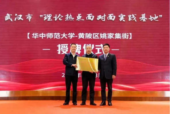 4月23日,武汉市首批“理论热点面对面实践基地”正式授牌,华中师范大学与黄陂区姚家集街党工委结对共建,共同探索新形势下推进马克思主义中国化、时代化的新路径,以实际行动推动党的理论创新成果和党的二十大决策部署落地见效。