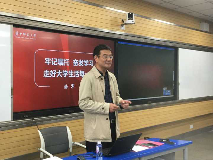 为深入贯彻全国高校思想政治工作会议精神,切实增强高校思想政治教育实效性,10月12日上午,校党委副书记骆军在8414智慧教室,为美术学院2017级新生上了一堂主题为“牢记嘱托,奋发学习,走好大学生活每一步”的思政课。