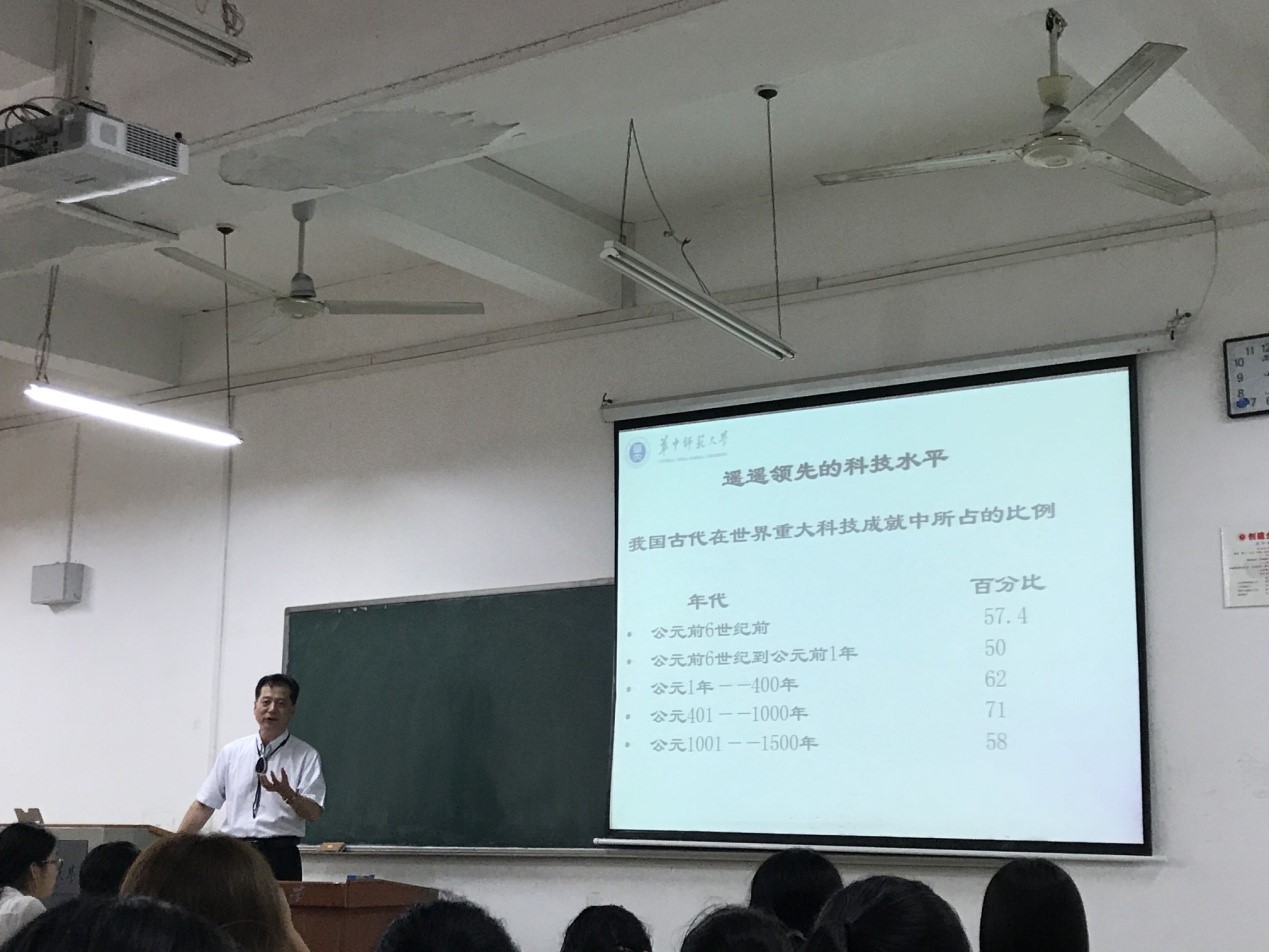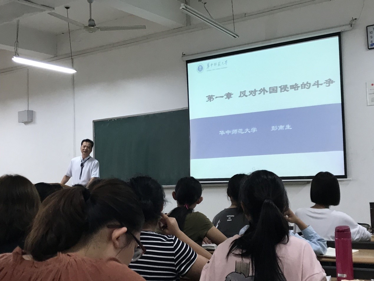 马克思主义学院讯10月9日下午2点,我校副校长彭南生教授来到8308教室,为我校马克思主义学院2017级思想政治教育专业本科生上了一堂精彩的《中国近现代史纲要》课。他用一组又一组经济学数据、统计图向我们展示了中国从汉唐盛世到19世纪衰败的历史过程。他用鞭辟入里的讲解,让我们在近代中国一败再败的唏嘘中汲取前进的动力。我校党委宣传部部长王长华、马克思主义学院副院长李芳、马克思主义学院部分青年教师共同聆听了本次授课。
