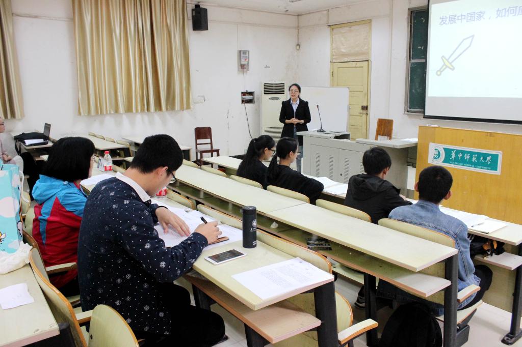 17级的甄飞扬的讲课主题是“政府”。他以政府的职责和性质为主线来贯穿课堂,甄飞扬将课程配以活泼的肢体语言,让他的课堂内容从枯燥转变为生动。加上他略显幽默的语言风格,使得课堂气氛更加的愉快活泼。