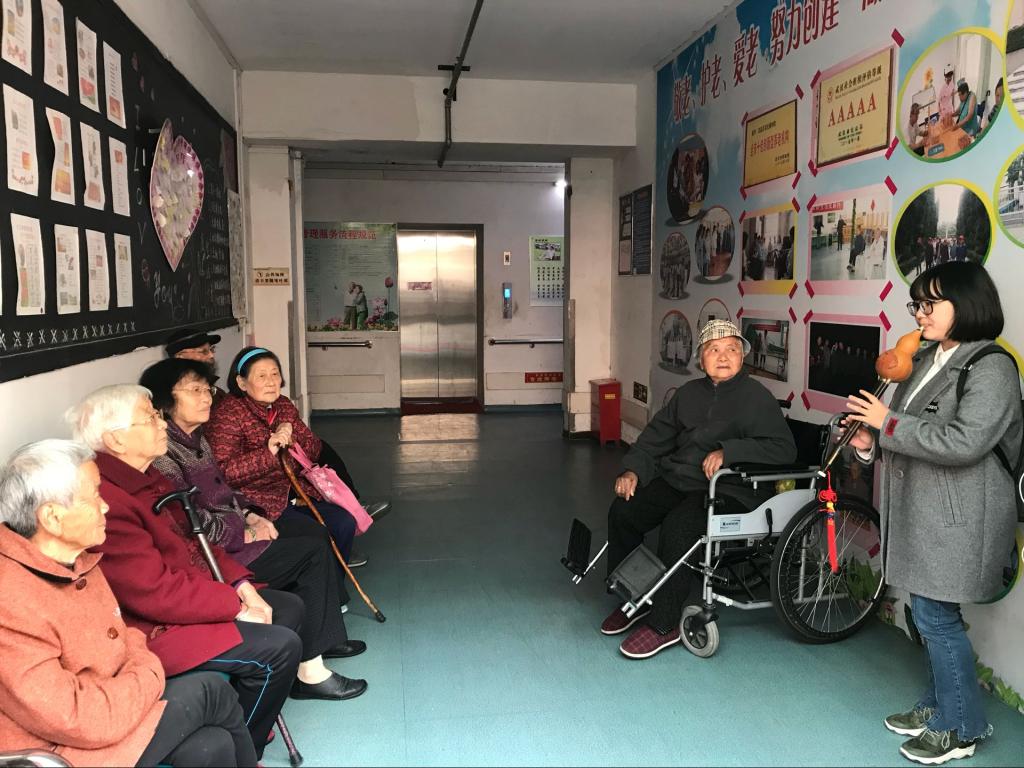 老人们对志愿者的到来表示非常开心,而志愿者们也发现了老人对陪伴的渴望。志愿者表演的葫芦丝、笛箫、黄梅戏等节目赢得了老人们的阵阵掌声。热情的老人们更是一起和志愿者合唱了《北京欢迎你》《歌唱祖国》等曲目,每个人脸上都洋溢着笑容。