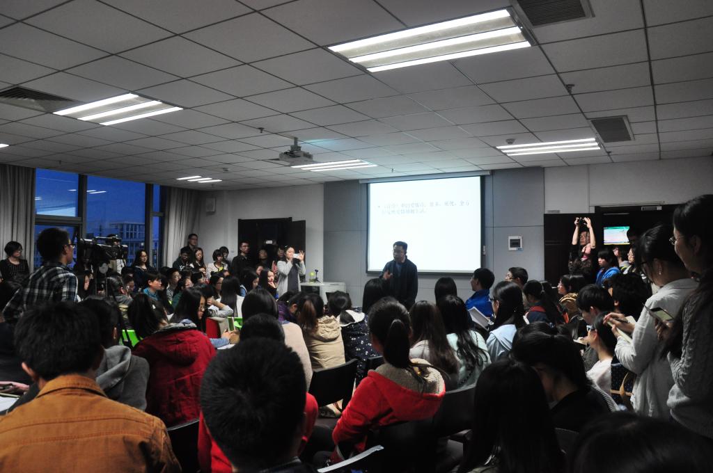 讲座过程中,韩维志教授用生动形象的比喻,将这些“恋诗”中的描述的情形与日常现实生活中的场景相结合,风趣幽默的语言引起现场同学们的阵阵笑声。在讲述《诗经》中这些婚恋诗的同时,韩维志教授引用朱熹《诗集传》中对于这些“恋诗”的批注作解,为大家理解这些诗歌开辟了一条新的思路。
