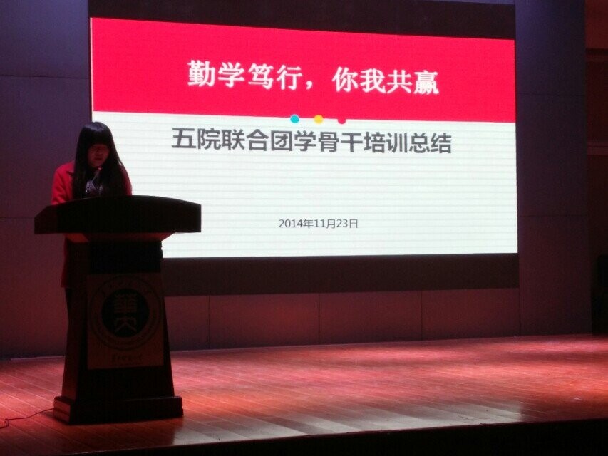 马克思主义学院讯(见习记者 刘思源 摄影 杨晓薇)11月23日下午,“勤学笃行,你我共赢”五院联合团干培训闭幕式暨总结表彰大会在大活五楼举行。公共管理学院党委副书记马新华,历史文化学院党委副书记张明生,体育学院党委副书记胡国良,公共管理学院团委书记王聪,体育学院团委书记洪满春和物理学院团委书记刘倩出席本次会议。