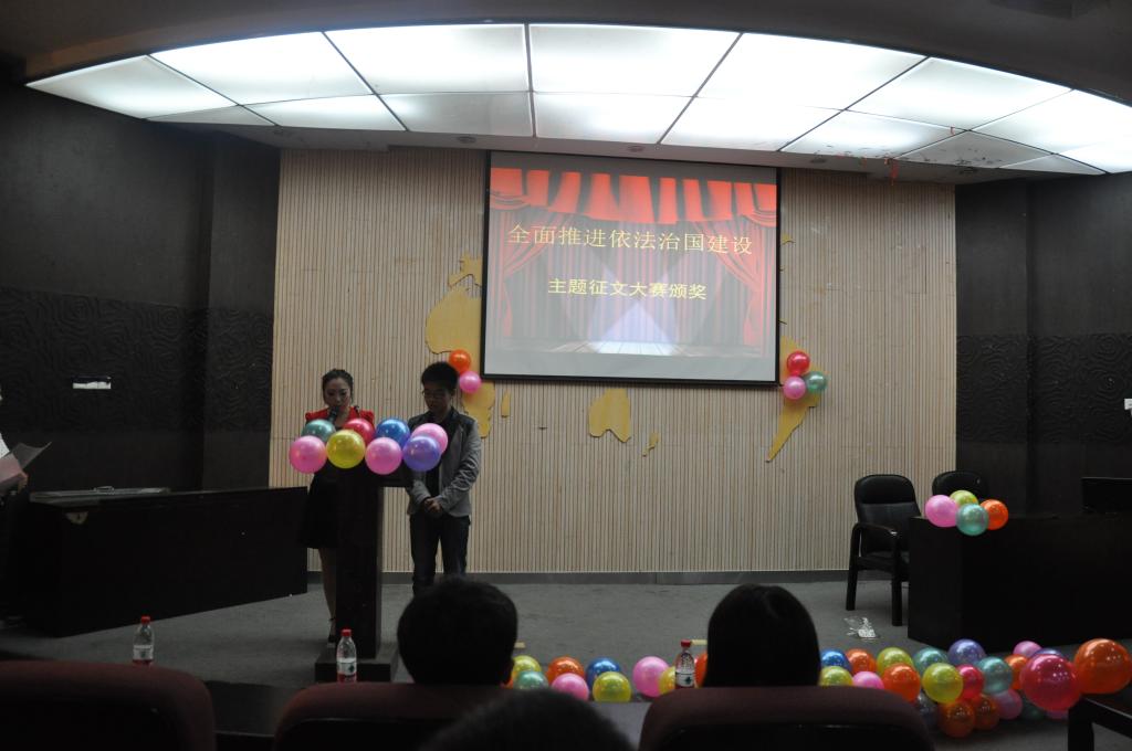马克思主义学院讯(记者 张敏)11月8日上午,由华中师范大学马克思主义学院主办、武汉理工大学马克思主义学院与中南财经政法大学马克思主义学院协办的“全面推进依法治国”征文大赛的颁奖典礼在十号楼报告厅隆重举行。我校宋增伟、杨美琴、陈智会等同学在此次征文中获得大奖。