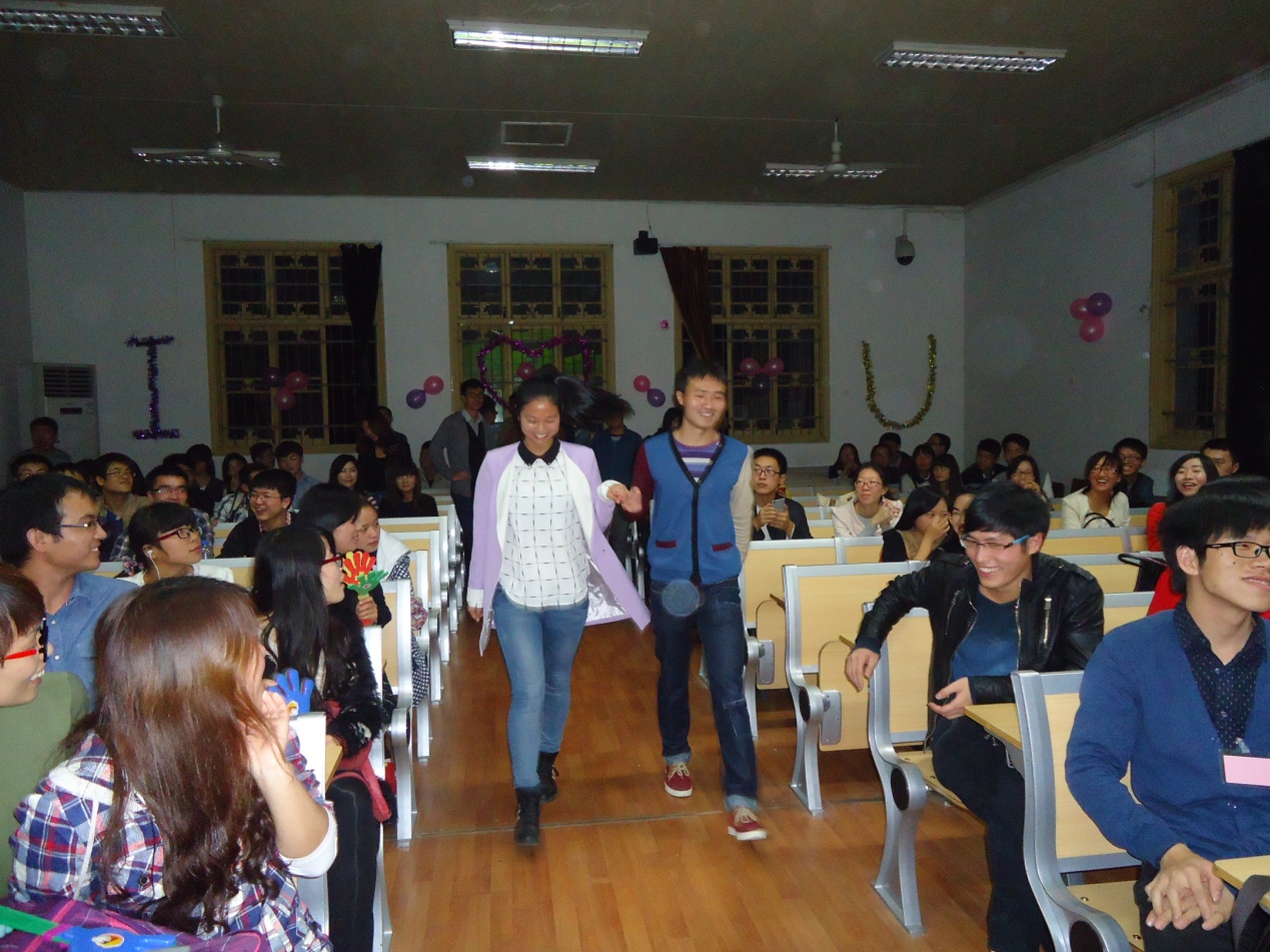 马克思主义学院讯(记者 张敏 通讯员 李丽丽 吕玉娟)11月1日晚上6:30,由华中师范大学马克思主义学院主办,武汉理工大学汽车工程学院协办的“想把我唱给你听”联谊会在华中师范大学1号楼201教室顺利开展。两院研一、研二的同学踊跃参加,全场座无虚席。一首少女时代的high歌《Gee》拉开了联谊会的帷幕。男女对唱情歌《想把我唱给你听》温文婉转,细腻生动,打破了大家初来的羞涩。联谊会在生动愉快的氛围中有序的进行着。联谊会除了男生女生约会的环节,其中也穿插了很多游戏表演环节。