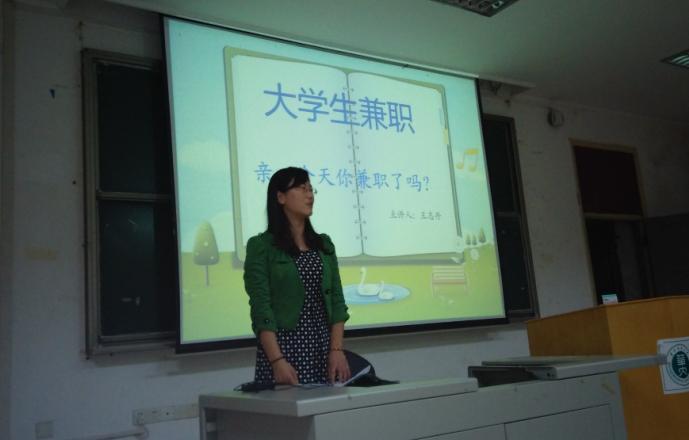 5月21号由马院和历史学院主办的“亲,今天你兼职了吗?”如期而至,主讲人是研究生王志丹同学。参与讲座的同学众多,并且积极的听其讲座,现场活泼生动。