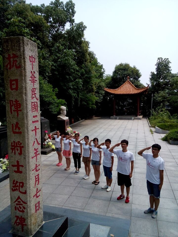 随后,队员了参观了革命烈士纪念双塔、揭竿亭、御侮亭,并分别在抗日阵亡将士纪念碑、烈士纪念碑和以及革命烈士墓群等地对革命烈士致礼悼哀。“虽喊着英灵永在、永垂不朽的口号,但我相信,革命烈士为国捐躯的时候想的并不是青史留名,或许只是简单的保护家中年老的父母、襁褓中的孩子。也正是对一个个小家的自私,组成了对中国人民的大爱。”队员李阳光感慨。