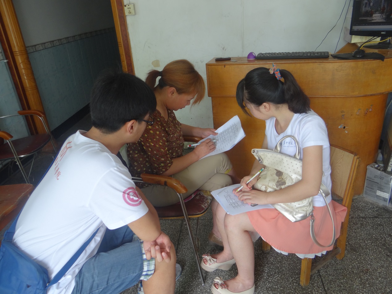 队长胡琴说:“英山人民特别热情,一听说是大学生来社会调研,即使有的老人听不大懂普通话,或者有的村民文化水平较低不能理解一些学术问题,但他们配合得非常积极主动,还泡茶款待我们。”