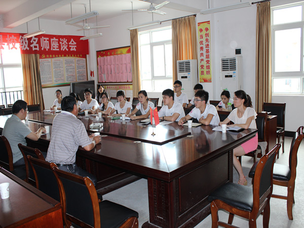 “筑梦青春”实践队首站来到了湖北省英山中学,围绕“如何上好政治课”“如何做好班主任工作”等问题与一线优秀的中学政治老师开展了座谈交流会。湖北省英山中学校办公室主任胡百泉、政教处主任余昭锋、英山中学一线教师、华师马院暑期实践队带队老师李欢以及全体队员参加此次座谈会。