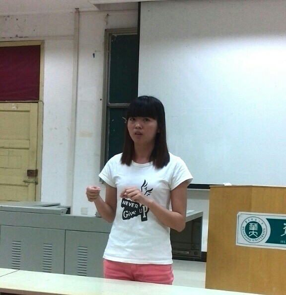 首先进行分享的是苏彩仪,签约广东省广州天河区七十五中。她先介绍了求职应聘前要做的六个“准备”,分别是:准备一份精致的简历,准备好一个随时可以用的自我介绍,准备好教育学、心理学、教育心理学这三科的知识学习,准备好中学教材的学习,准备好说课、讲课等面试内容,准备好就业信息的获取。接着苏彩仪分享了应聘时需要注意的问题,她说:“面对面试官刁钻的问题,要冷静应对,回答时要思路清晰,突显自己的优势。”