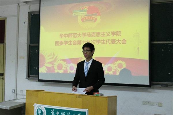 从入学的招新、新生晚会到“政法杯”、再到“青年领袖恽代英”讲课大赛、“煮酒论典,演剧新绎”话剧大赛等,一段视频回顾了团学联过去一年的历程,每个部门都在马院这个大家庭里留下了自己的汗水和光辉的一笔。接着,马院第十八届学生会主席单文鹏作了《2014—2015年度学生工作报告》。