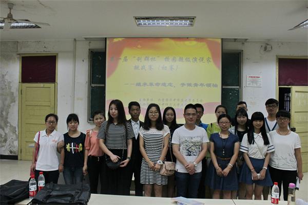 马克思主义学院讯(记者 程榕 摄影 田力)5月23日下午,我校第一届“利群杯”校园超级演说家挑战赛初赛在1101教室举行。研究生代表任浩、华大学生会副主席郑宁、我院主席单文鹏及我院辩论队严汉妮作为评委出席比赛。