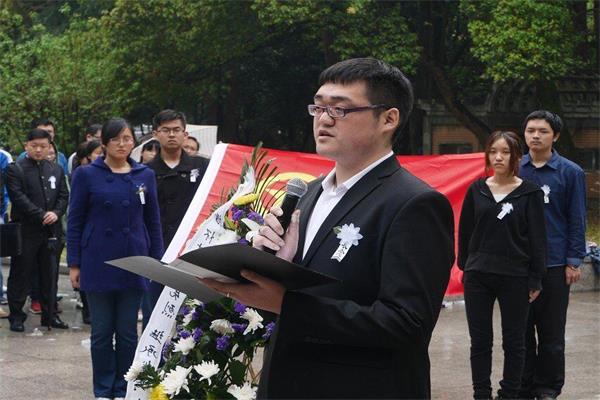 随后,我院的李金督同学作为校学生会主席宣读了祭文,缅怀追忆我们伟大的青年革命领袖。