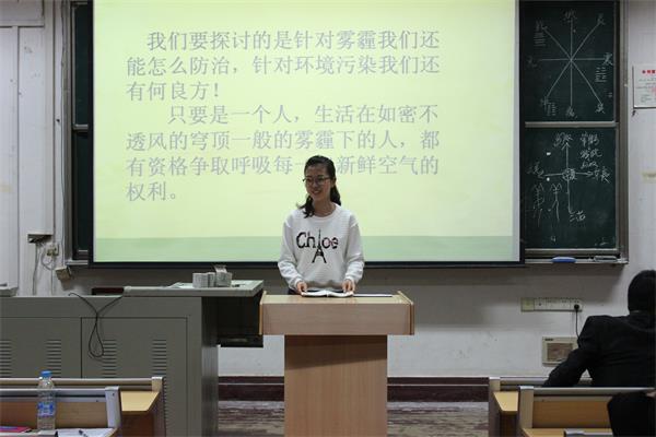 第二轮,以《穹顶之下》引出雾霾等环保问题,王珂玮、郭金潇、向雪菲和丁姗各自发表了自己的评论。