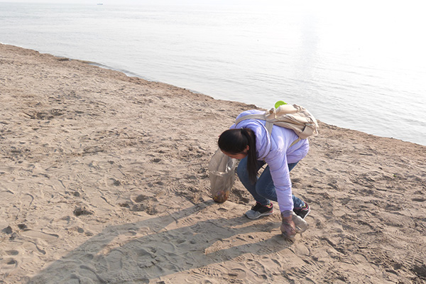 活动的最后,共18名志愿者捡到了人均一袋的垃圾。志愿者贾冬利在看到被污染的环境后,表示为能出一份力而感到欣慰。王菲说:“青协往年也会举办‘拾爱’江滩的活动,主要还是希望能做些大学生可以做的事。”