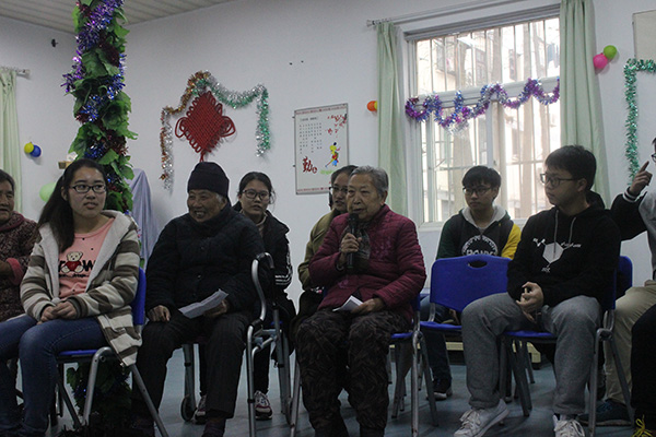 最后,老人们送上了对同学们的祝愿,“你们抽出了宝贵的时间来看我们,还对我们这么有耐心,我们很开心,你们都是我们的宝贝。” 同时老人们也提出了对同学的要求,希望大家爱惜身体,珍惜时光,培养真才实干。同学们表示会记住老人的期望,并祝老人们身体健康,长寿平安。