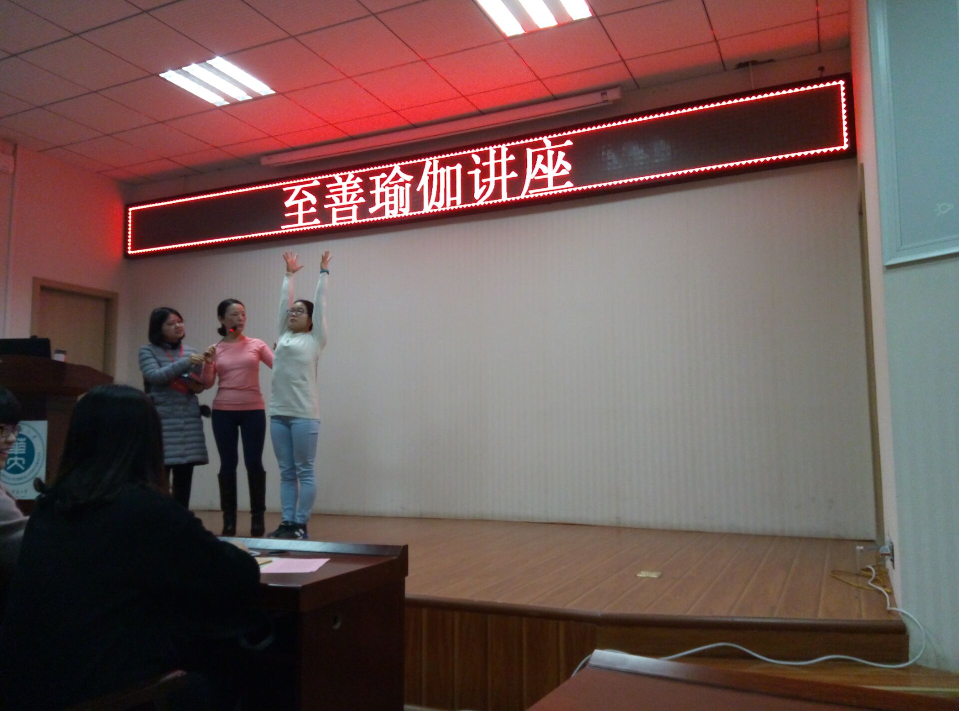 什么是瑜伽?安老师认为,瑜伽是关系到内心的一门科学,这门科学包含多种方法,通过这些方法,人们可以达到身心的统一,从而实现自我的领悟。简而言之,瑜伽即融合。随后,安老师讲解了瑜伽的发源,即瑜伽的发展的两个重要时期——“希瓦时代”和“克里师那时代”。接着,安老师又讲解了瑜伽的几个练习阶段。有趣的是安老师不仅仅是讲解关于瑜伽练习的理论知识,在这个过程中,她还亲自示范动作以及邀请同学们上台亲身感受不同的瑜伽动作,如伸展、扭转、弯曲等等,现场的师生也投入地跟着她学习。安老师还讲解了我们人类生理与瑜伽之间的密切关系,启发广大师生通过瑜伽来保持身心健康。