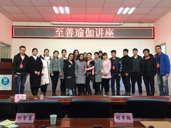 讲座伊始,主持人代表华中师范大学以及武汉理工大学的广大师生对安荣导师表示了热烈的欢迎,同时也对她进行了一个简短的介绍:安荣导师是国家一级瑜伽裁判、高级瑜伽导师、高级瑜伽理疗师,国家一级营养师、国家养生指导师。她自2004年系统专业学习瑜伽以来,便遵循瑜伽之道,研学经典,跟随名师,曾赴瑜伽发源地印度以及美国学习。安荣导师在教学中注重将瑜伽与生命科学、生活哲学相融合,全面引导人们真正受益于瑜伽。之后,华中师范大学马克思主义学院研究生会主席彭杨、武汉理工大学资源与环境工程学院研究生会主席刘丰凯分别发言,都表达了对安老师的崇敬以及对此次讲座的无比期待。