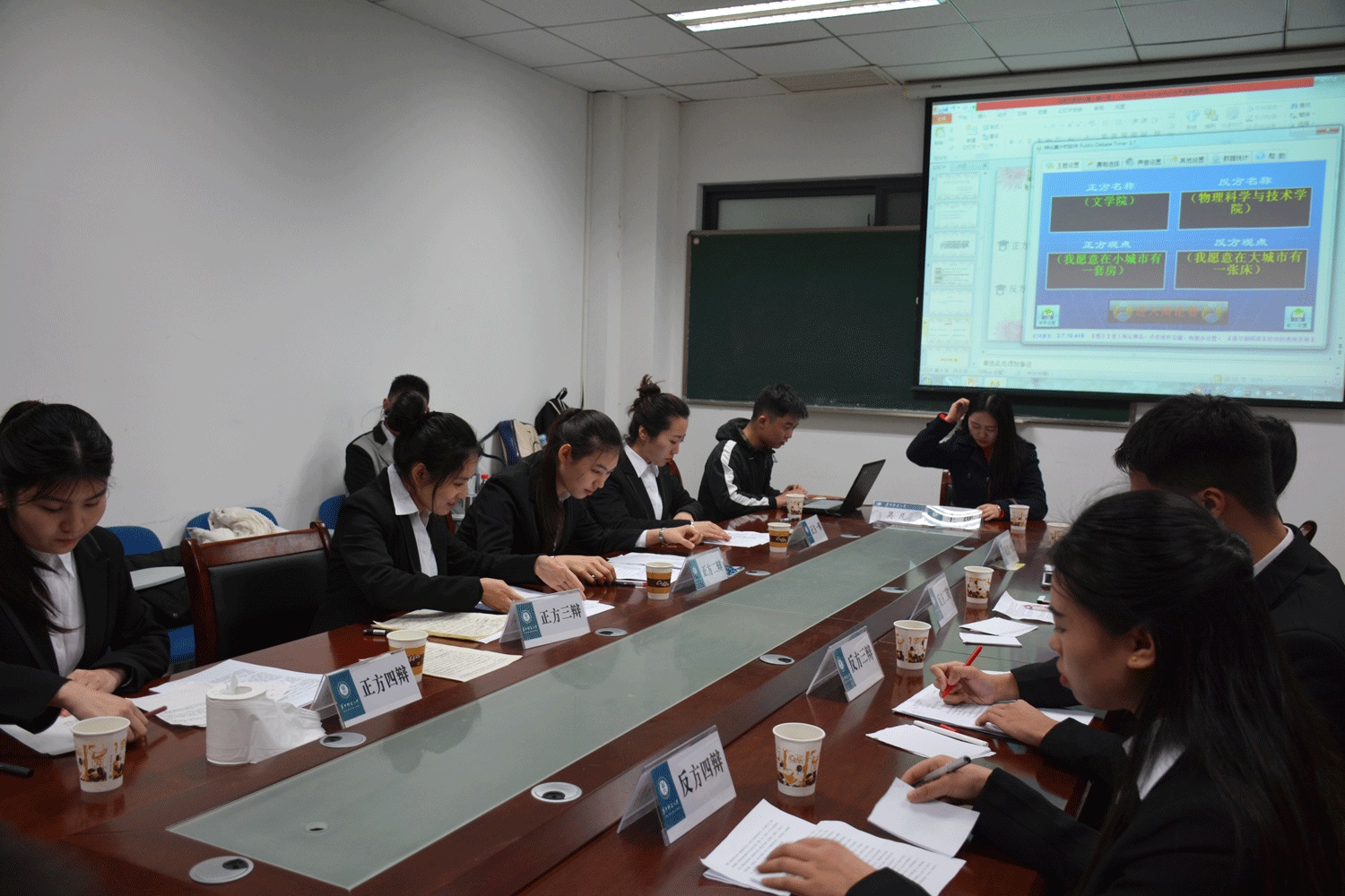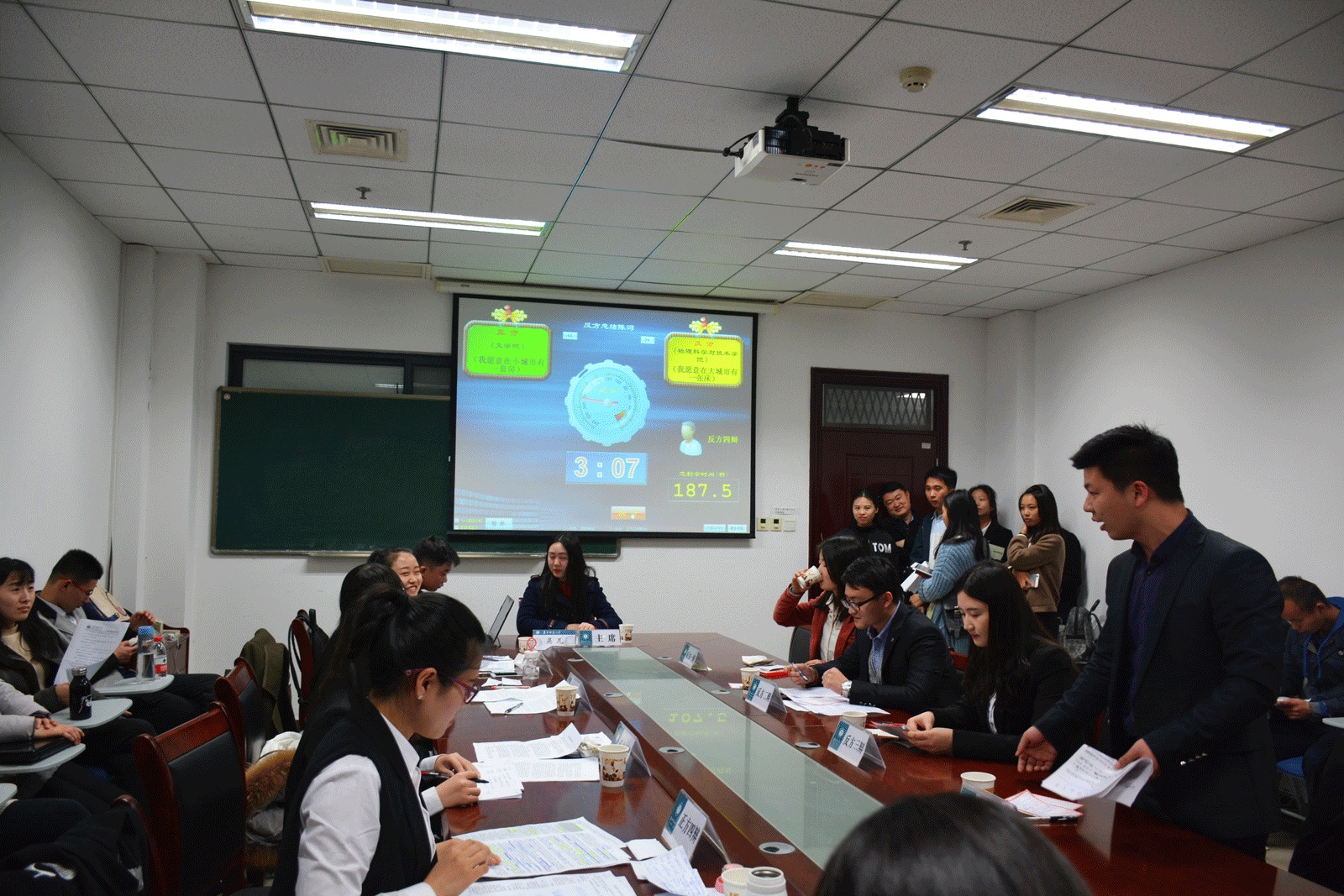 马克思主义学院讯(记者 邓宏霞;摄影 刘蓓蓓)3月18日晚上6点30分,华中师范大学首届“求实杯”辩论赛于国际文化交流学院中国近代史研究所502会议室举行。本次辩论赛由华中师范大学研究生会主办,马克思主义学院承办,并邀请到马克思主义学院研究生会主席兼最佳辩手彭杨、历史文化学院研究生会副主席程俊以及马克思主义学院研究生会副主席牛丽鸽担任评委。本次辩论赛共分两场,以“我愿意在大城市有一张床还是愿意在小城市有一间房”为论题。同一个辩题,第一场是文学院对物理科学与技术学院,第二场是数学与统计学院对城市与环境科学学院。
