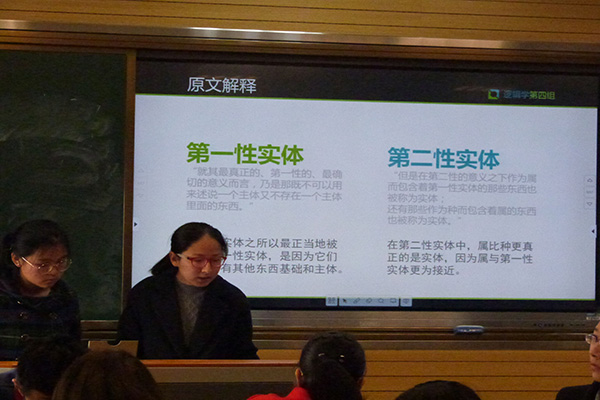 通过此次研讨课,同学们在对亚里士多德的著作《工具论》中的《范畴篇》和《解释篇》的理解与掌握的基础上,加强了各个小组之间的交流合作的默契,同时也开拓非师范生对自身未来职业规划发展的眼界。