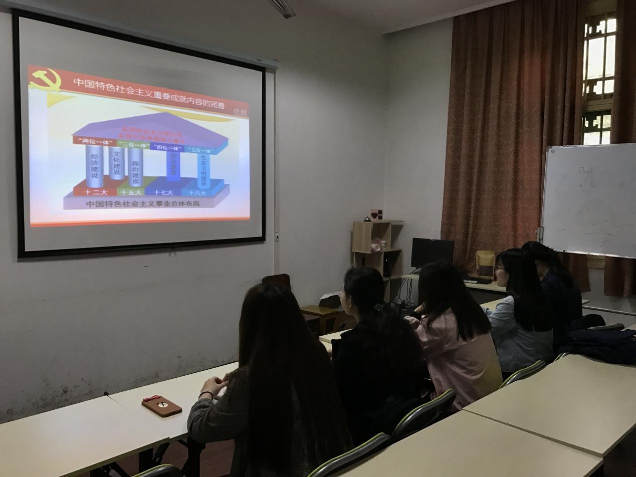 随后,全体支委会委员观看了《新内容 新要求——十八大党章解读》的视频。视频内容主要围绕十八大党章修正中有关“对中国特色社会主义重要成就内容的充实”这一方面进行详细解读。陈玮玮表示,视频里的内容让她对十八大党章修改的部分具有更深入的认识,也激励她带着一颗认真的心去阅读党章,理解党章。付晶晶表示:“视频中对于党章的讲解使我获益匪浅,在今后的学习和生活中我要严格以党章来规范自己。”