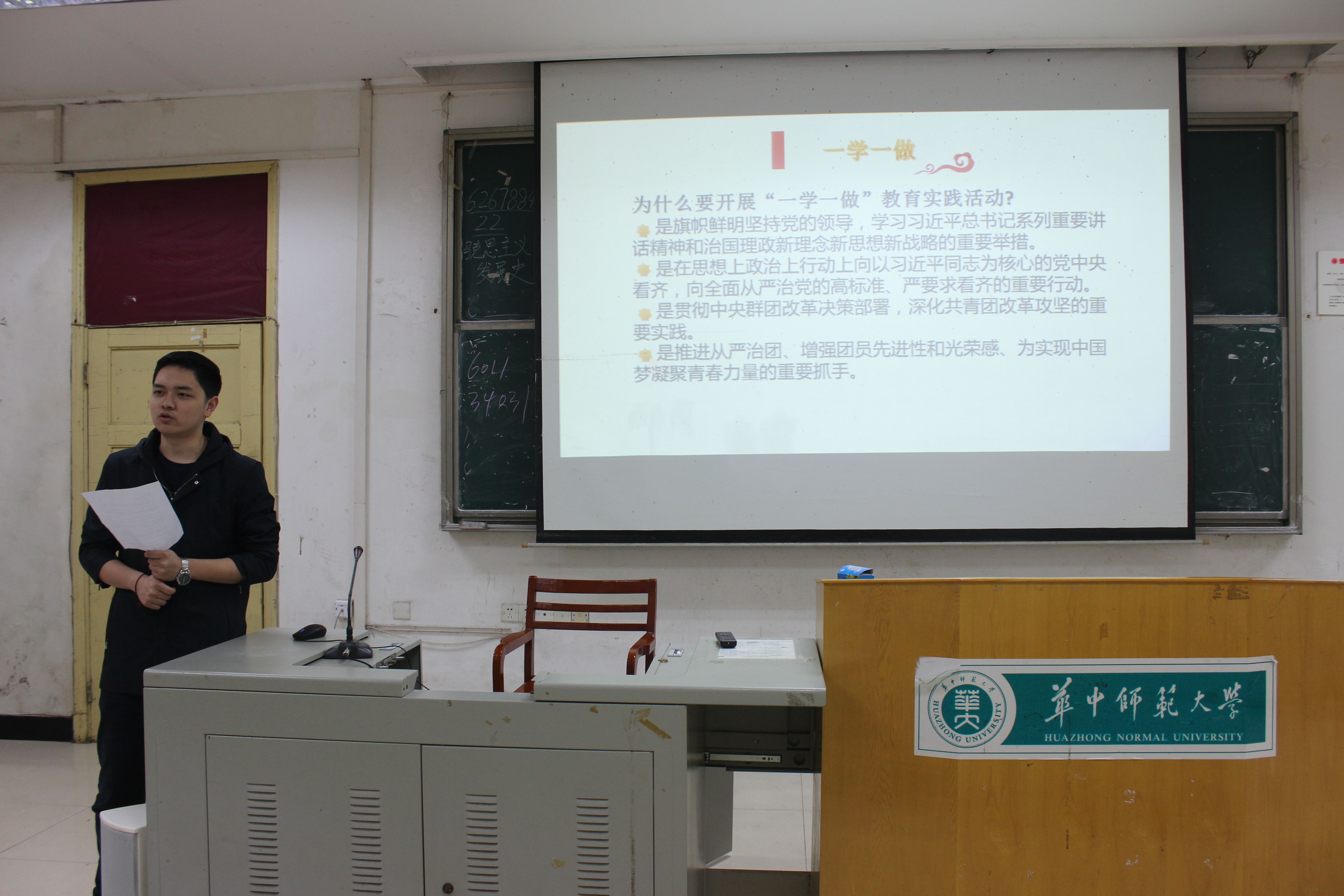 接下来,王轲玮以“一学一做”的教育实践为主题进行发言。他首先解释了“一学一做”具体的实质与内涵,即“学习总书记系列讲话,做合格团员”。他表示现在多数团员存在着入团时间久,团章的认识淡化的问题,而当下倡导的“一学一做”教育实践活动正是对团章最好的回顾与温习,所以大家应把握机会,跟随团中央的思想引领。他强调,团员应了解自己的权利与义务,同时各基层团干需要明确自身职责定位,树立服务意识,真正发挥团员在青年中的思想引领的积极作用。
