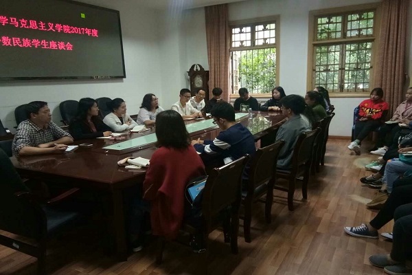 马克思主义学院讯(通讯员 吕瑞 德西卓嘎)为深入学习贯彻落实全国高校思想政治工作会议精神,加强对少数民族学生人文关怀和心理疏导,4月25日中午,马克思主义学院在一号楼二楼会议室召开藏、维、回族少数民族学生座谈会。学院党委副书记邵莉莉,学工部学习发展中心主任刘枫,辅导员王海龙、马梦琦、吕瑞与会。