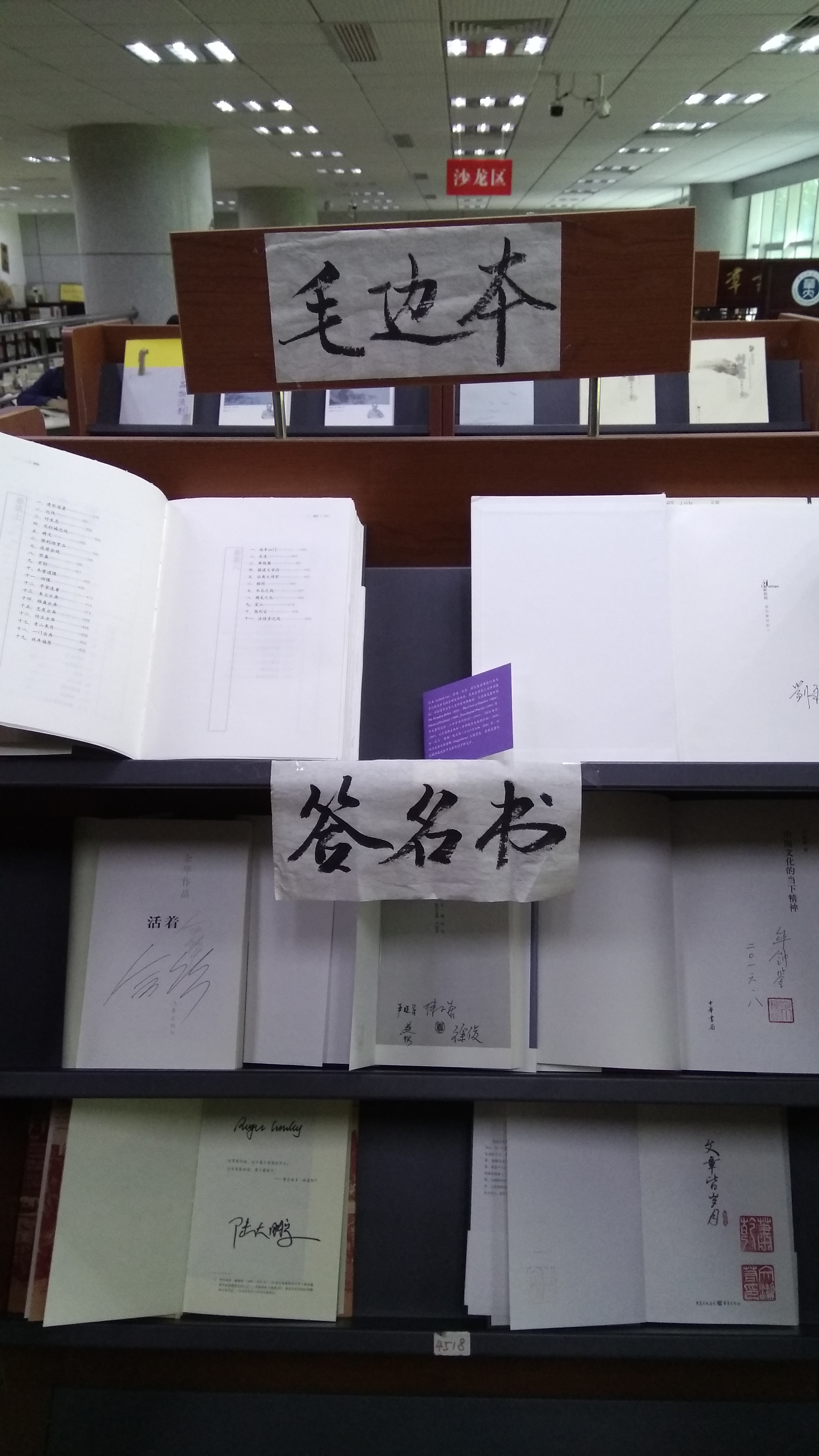 对于爱书之人,最不能错过的应该是图书区的小型书展了。书展以广西师范大学出版社出版书目为主,其中理想国译丛、文学纪念碑等丛书在现场亮相。此外,毛边书、签名书更是让人大饱眼福。刘禾签名版的毛边本《持灯的使者》、余华《活着》签名本、萧乾、文洁若钤印本《文章皆岁月》等让人流连忘返。书展现场书目丰富,还吸引了许多小读者。