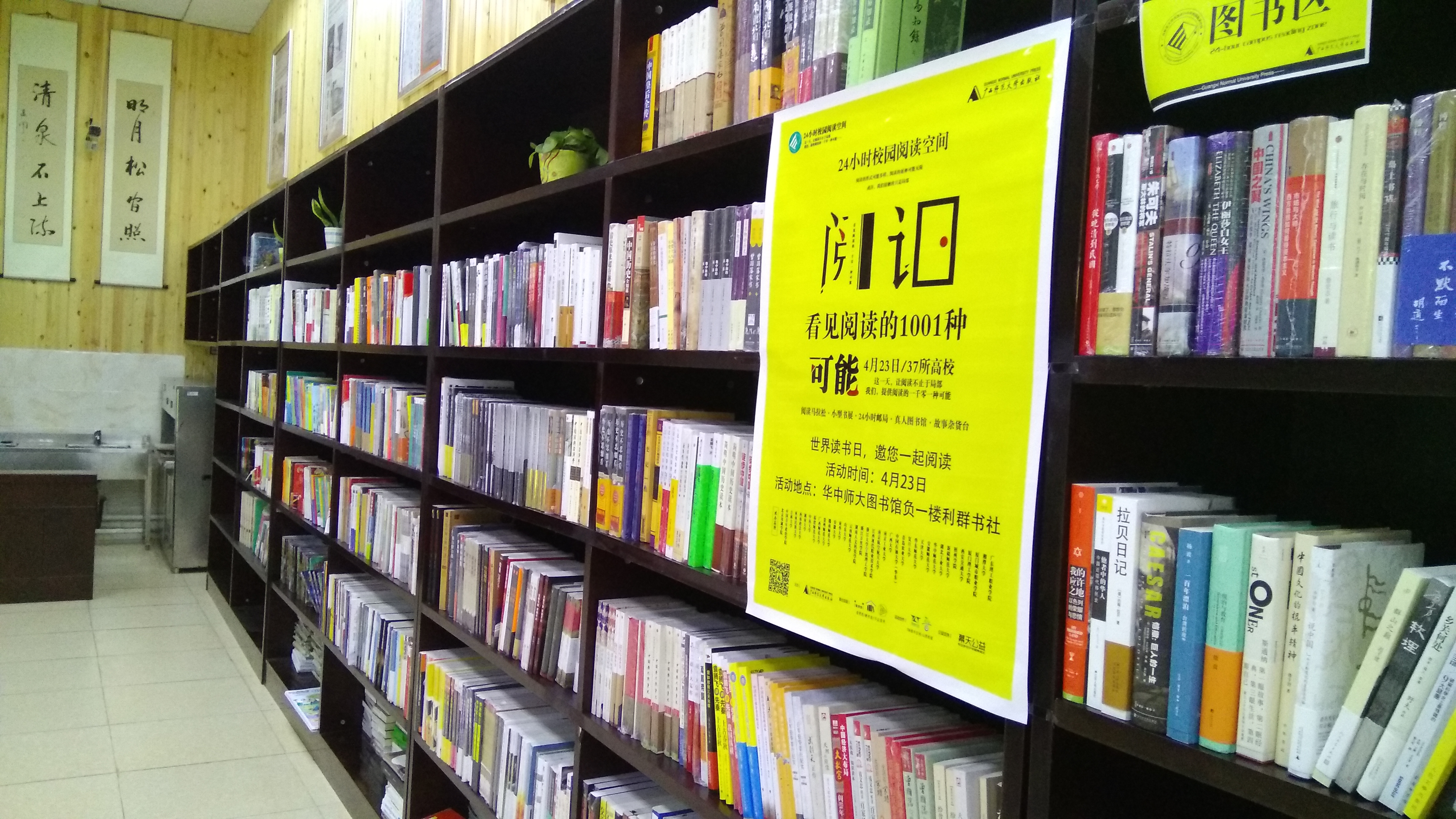 马克思主义学院讯(记者 刘思源)4月23日上午,“24小时校园阅读空间”活动在我校图书馆负一楼利群书社举行。该活动由广西师范大学出版社发起,横跨全国30座城市,联动37所高校,旨在一起探寻理想的校园阅读空间。