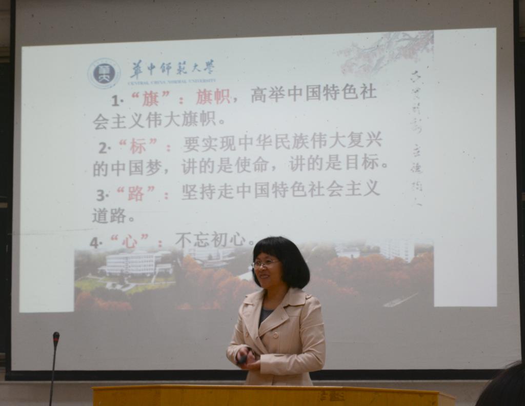 活动最后,主持人朱月霞作了总结:“五年一个起点,中国发展的新征程正在开启;我们是社会发展的中流砥柱,我们要担负起社会的责任,脚踏实地、艰苦奋斗,努力构建美好家园,实现美丽中国梦。”既是对十九大描述的新时代图景的概括,更是对同学们励志奋进的自勉态度的总结。