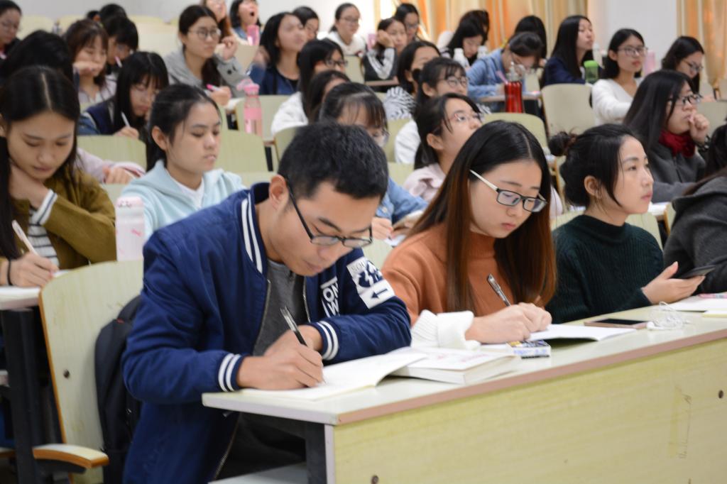 活动第一项,周兴会老师解读十九大,带领大家从宏观视角把握了十九大报告的全局。周老师从会议主题、报告的整体思路和逻辑结构、报告重点以及报告新概念等四方面对习总书记的报告内容进行了高度概括:从“旗”“标”“路”“心”四方面解读会议主题,以具体——抽象——再具体的思路梳理六大板块,强调定位、定标和定法三大重点,简要阐述了新时代、新理论、新矛盾、新的奋斗目标和新方略等新概念。同学们专心聆听、认真记录。