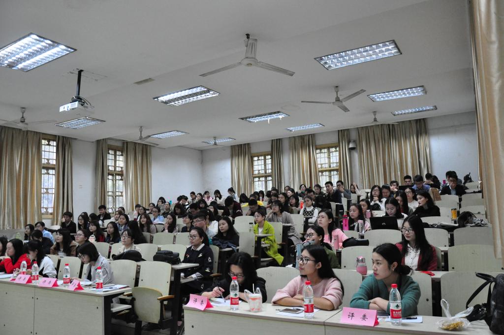 来自物理科学与技术学院的刘佩同学在《弹力》教学中通过演示法辅以生活实例,将抽象的力学问题形象化,生动讲解了弹力产生的原因、要素以及大小和方向。来自城市与环境科学学院的周玉琴同学以《谁是凶手》悬疑故事导入教学,通过空调安装位置以及《飘动的烟雾》实验解说热力环流,导入引入入胜、讲授通俗易懂。来自外国语学院的邵星星同学以精致的道具、生动的情境教授了《方位词的介绍》一课,她以介绍好友Kitty为线索串联Kitty与纸盒的位置关系、Kitty的房间物品摆放(记忆挑战)、糖果与纸盒的位置(糖果奖励)、你的房间设计等情景进行了全英文授课,同时注意在布置任务时对关键词辅以中文解说。来自数学与统计学院的高中元在《相似三角形的判定》教学中灵活运用几何画板等现代教学手段,化抽象为具体。诸如此类,不胜枚举,每一位参赛选手都以出色的表现赢得了阵阵掌声。大赛现场气氛活跃、掌声不断,观众仔细观看、认真记录。