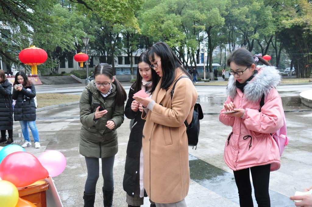 马克思主义学院讯(记者 史莹莹;摄影 曾欢琳)正值每年一度的“女生节”,为营造轻松温馨的校园文化氛围,体现对华师广大女生的关爱与呵护,2018年3月7日中午12点半,由华中师范大学马克思主义学院研究生会、外国语学院研究生会和教育信息技术学院研究生会主办的女生节活动在学校的喷泉广场顺利开展。