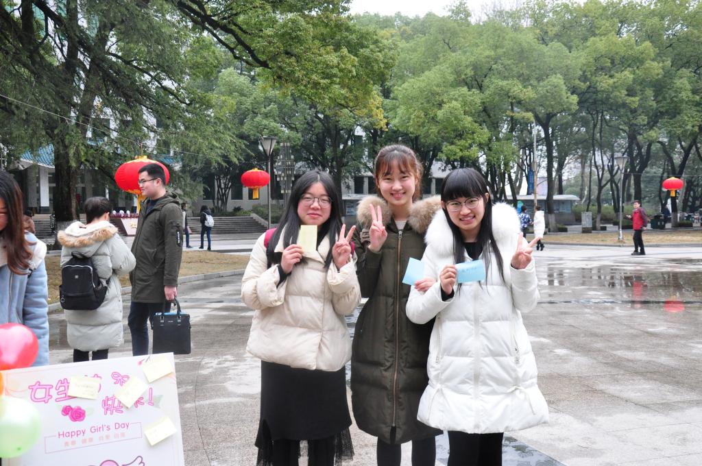 本次活动在为全校女生送出祝福与温暖的同时也展现了广大女生的靓丽风貌。在此祝愿华师女生们节日快乐,在今后的日子里也更加愉快从容的生活,面若桃花,心有灵玉。 (编辑 刘惠茹)