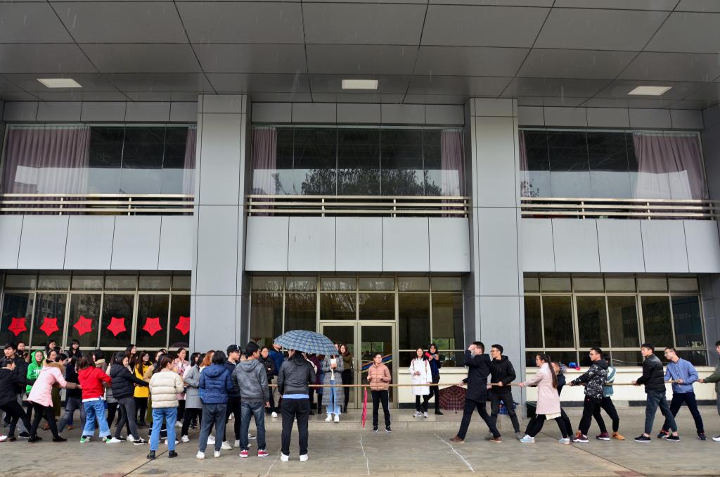 经过抽签,第一轮进行比赛的是信息技术学院和心理学院。裁判员比赛讯号发出的那一瞬,参赛的队员紧握长绳,卯足了劲拼命往后拉!那一张张青筋暴起的面庞,那一双双用力到青紫的手掌,写满了永不放弃!未参赛的同学自发组成啦啦队为比赛选手呐喊加油,“一二一”的呐喊声和哨子声此起彼伏,现场激烈的比赛将整个活动推向了高潮。