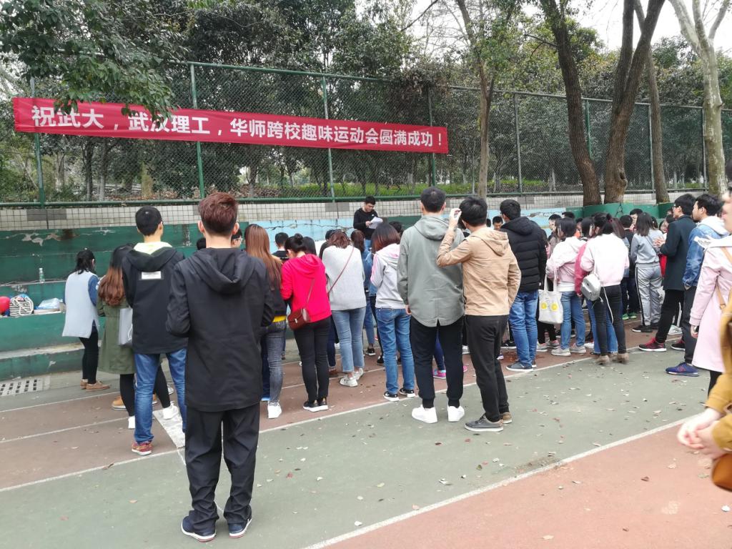 马克思主义学院讯 (记者 史莹莹; 摄影 史莹莹 )为展现广大研究生学子的运动风采,并加强院际、校际研究生的联系与交流,2018年3月24日,由华中师范大学马克思主义学院研究生会、计算机学院研究生会主办,华中师范大学外国语学院研究生会协办的跨校趣味运动会在华师西区操场举行,同时活动也邀请了武汉大学动力与机械学院的研究生和武汉理工大学汽车工程学院的研究生共同参加。