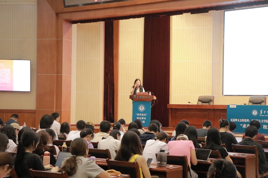 随后,宋谨校友为我们展现了“智慧蝶变”的魅力,讲述了李老师如何从一名研究员、一名思政教师转变为成功的商业精英,她敏锐的商业洞察力和高尚的品格为所有人树立了一个精神坐标。