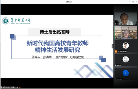 马克思主义学院讯(通讯员 能丽娟)6月18日,马克思主义学院通过腾讯会议系统举行了“马克思主义学院师资博士后出站答辩会暨中期考核汇报会”。为适应疫情防控需要,有序推进博士后管理工作的正常开展,本次考核采用线上方式进行。此次考核邀请了教育部“长江学者”特聘教授、中国人民大学马克思主义学院教授刘建军,武汉大学马克思主义学院副院长杨威教授、东南大学马克思主义学院廖小琴教授等三位学科领域知名专家和学院四名流动站合作导师共7位成员担任考核组评委。本次考核对一名2017年进站工作满三年的博士后进行了出站考核,对五名2018年进站期满12个月的博士后进行了中期考核。