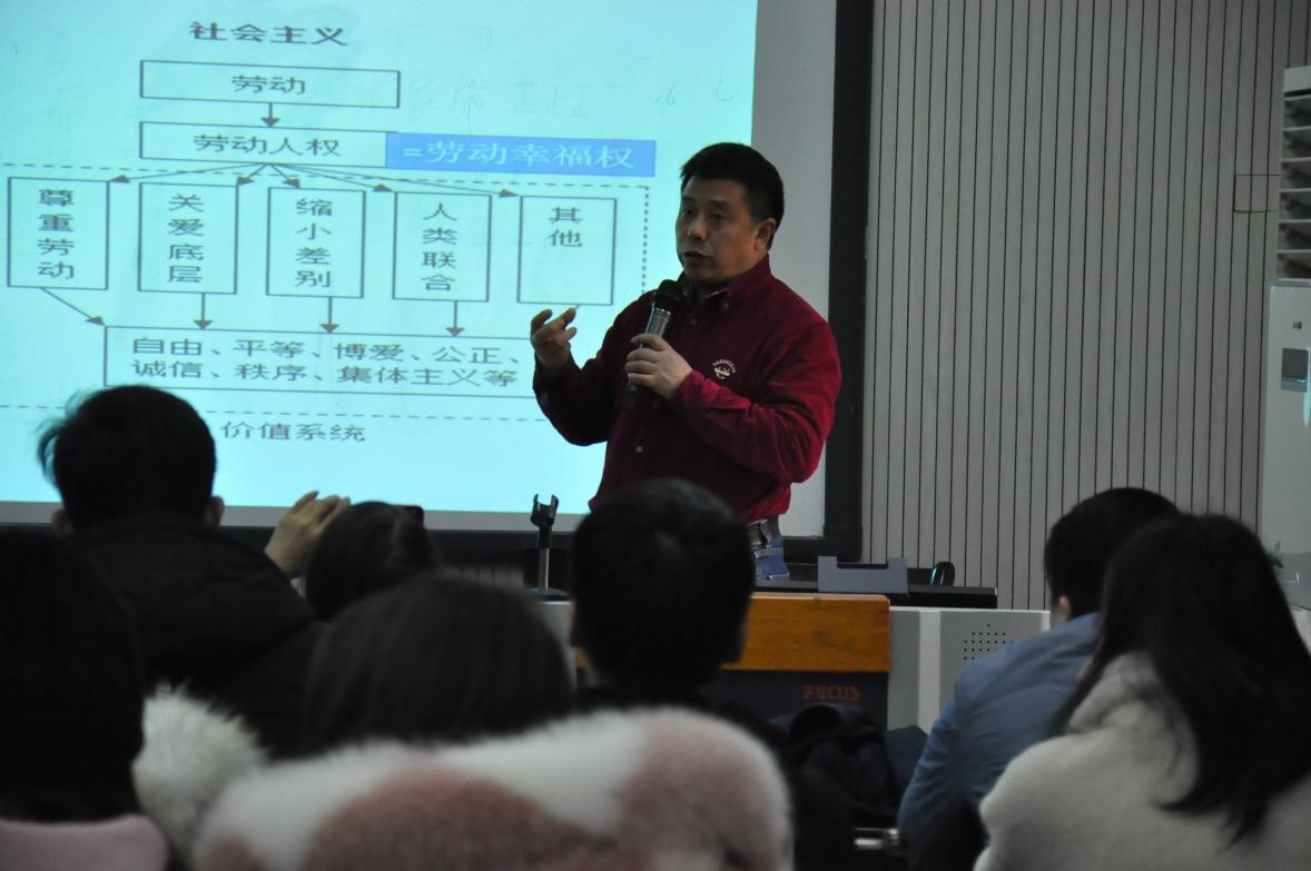 讲座伊始,何云峰教授对道德期待的概念进行了讲解,他指出道德期待是社会期待的一种,是一种特殊的社会道德心理现象,反映的是社会公众对特定群体或个体满足伦理应然规范要求的程度所持有的期待感。紧接着,何云峰教授从道德期待的概念出发,讲述了涉及的相关因子和道德期待的作用。随后,何云峰教授分析了道德期待的三个领域即:私域道德期待,公域道德期待和职域道德期待。何云峰教授基于道德期待的三个领域,详细阐述了道德期待与人的个性发展的关系,他指出:人的个性发展等于个体根据道德期待进行自我角色选择和定位,要考虑道德期待是否涉及道德公平,是否会引发更多值得思考的问题。讲座的最后,何云峰教授指出,道德期待涉及的是人的个性化发展目标的期待,本质上会促进个体自由而全面的发展,不损害道德公平。整场讲座内容详实,语言生动,何云峰教授深入浅出的讲解,赢得了全场师生的热烈掌声。