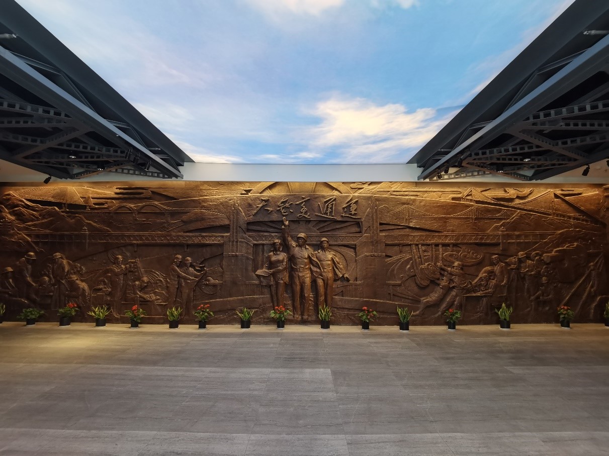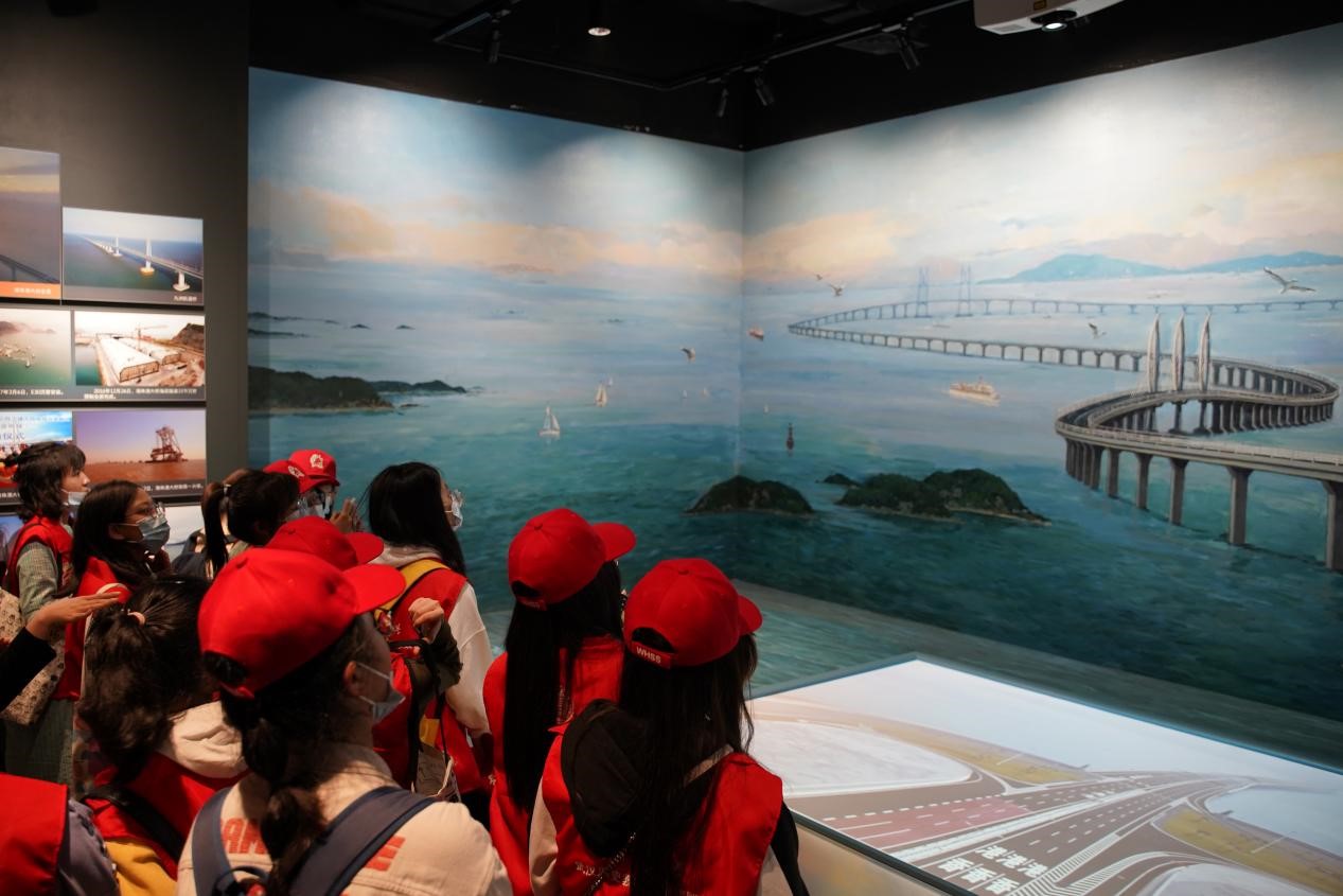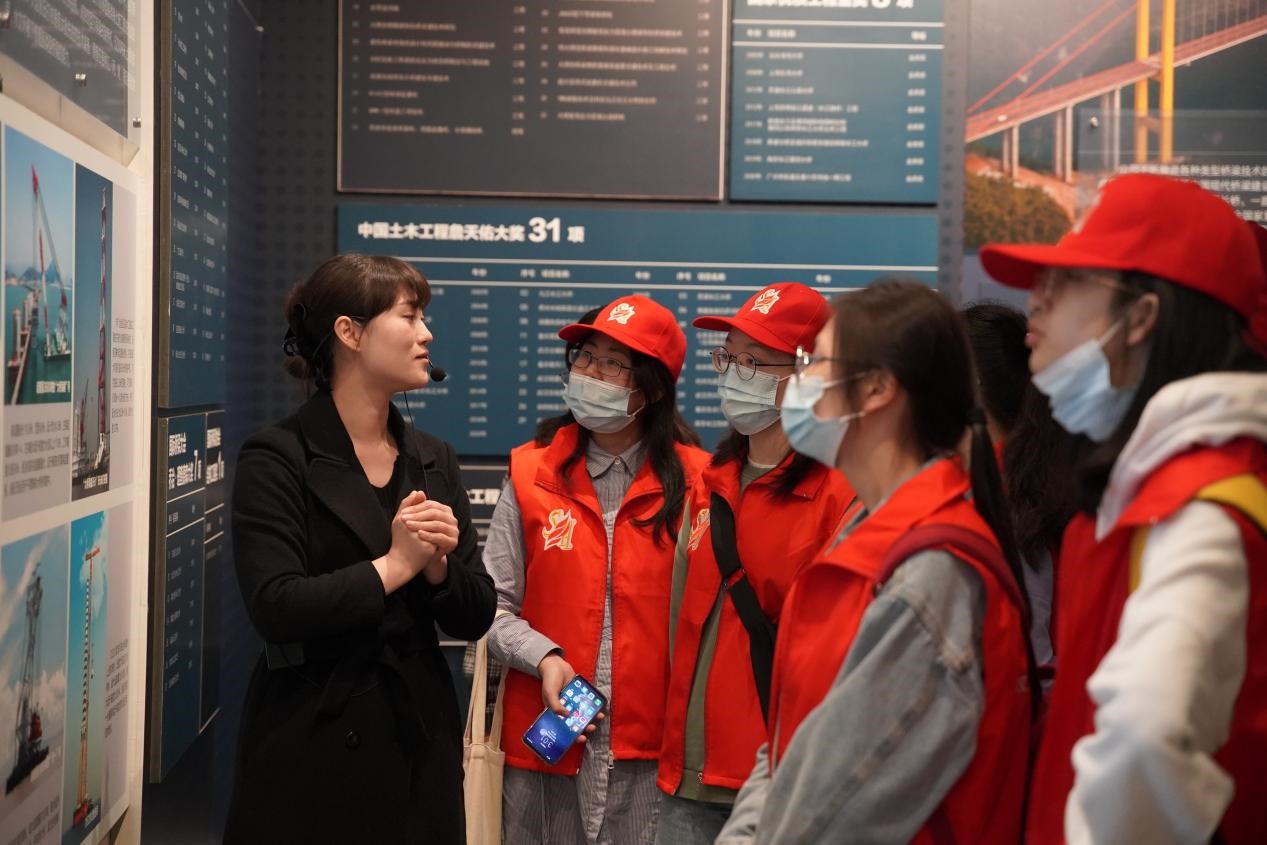 桥梁博物馆是桥梁世界的浓缩、桥梁发展的轨迹、桥梁精神的展现、桥梁科技的演绎。同学们在讲解员在带领下进入大厅,首先看到包含着“天堑变通途”这几个大字和世界各地知名桥梁缩影的一幅宏伟壁画。建造桥梁,跨越障碍,让天堑变通途,是人类不懈的追求与梦想,桥梁的发展史就是一部人类的跨越史、奋斗史。