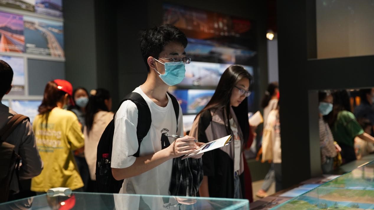在讲解员的指引下,同学们开展搭建拱形桥体手工实践,观看建桥工人工作视频,深入学习桥文化,感受桥梁建设的独特魅力。大家还认真倾听有关桥梁奖项的生动故事,了解现代化建设道路上大桥建设向纵深推进的历程。