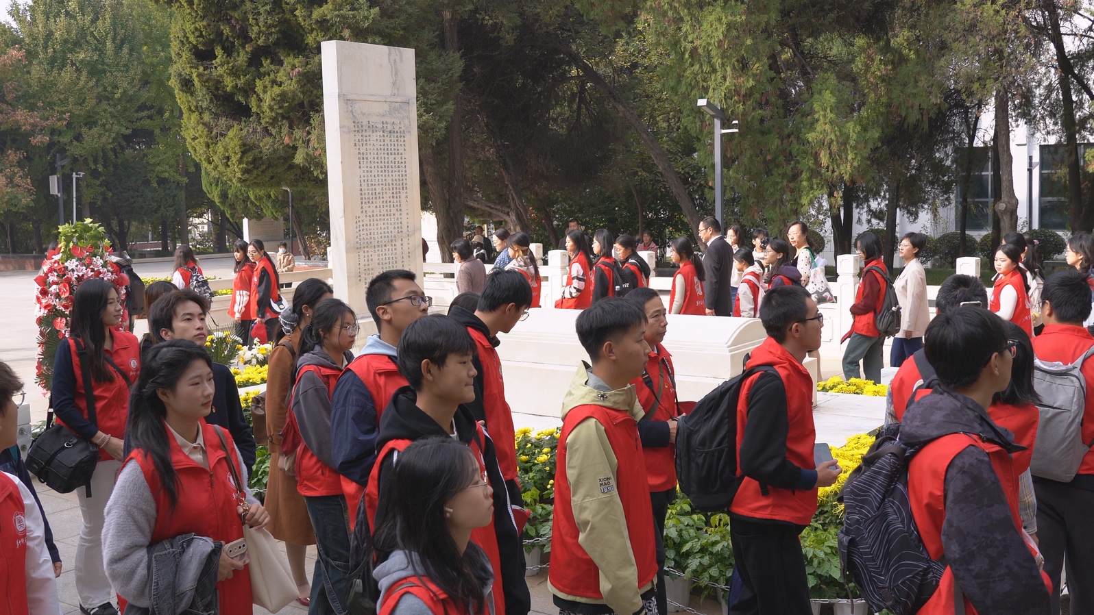 11月1日上午,我院师生在讲解员的带领下来到焦裕禄纪念园,华中师范大学马克思主义学院副院长李芳代表学院向焦裕禄烈士敬献花篮,全体师生向焦裕禄烈士鞠躬默哀,并绕陵墓一周瞻仰焦裕禄烈士墓,向焦裕禄同志致以崇敬和哀思。
