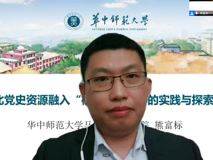 华中师范大学熊富标副教授以《湖北党史资源融入“概论”课教学的实践与探索》为主题,首先介绍了湖北丰富的党史资源,并系统分析了湖北党史资源融入“概论”课教学的总体思路和可行性,从学思悟行四个方面阐述了融入的具体方式,包括“小故事+大背景”式“学”党史、“以点促线带面”式“思”党史、“读讲辨演”沉浸式“悟”党史等。随后,熊富标副教授进行了小结与反思,他认为这种教学方式的整体性还有较大的提升空间,同时,教师也要有更为宽广的视野和更新的知识储备。