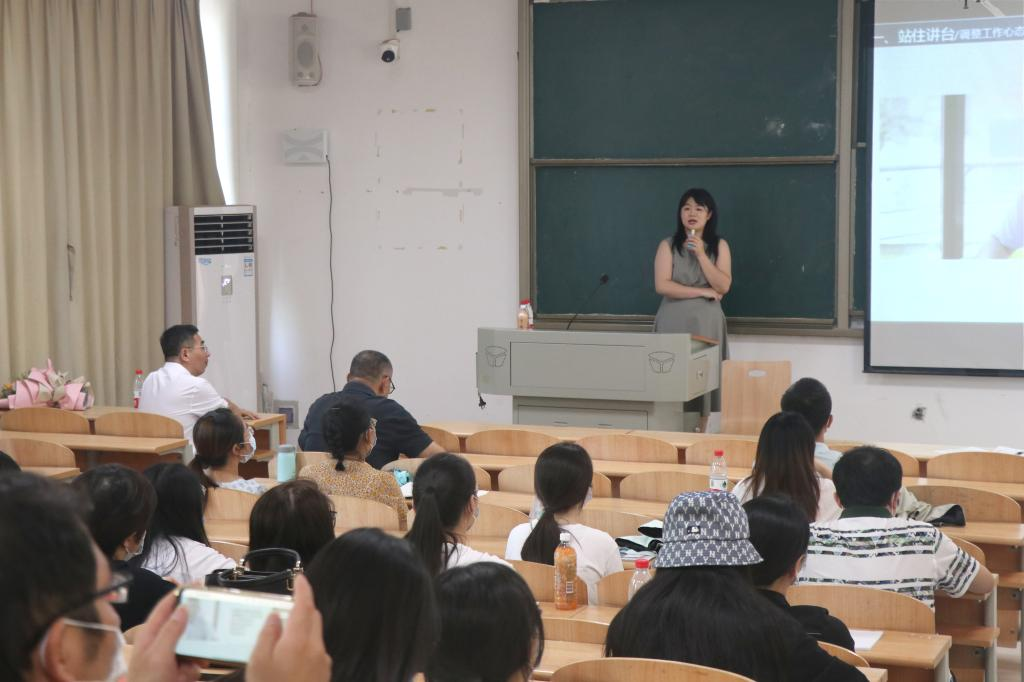 刘梦觉老师以“站住讲台、站稳讲台、站好讲台”为主题,围绕如何面对大学教师身份的转变,如何从研究者变成新的学习者,如何为全省青年教师教学竞赛备赛,如何提升教学技能等方面,结合日常课堂授课案例、全省青教赛的参赛过程,为该校青年教师带来了一场精彩讲座。