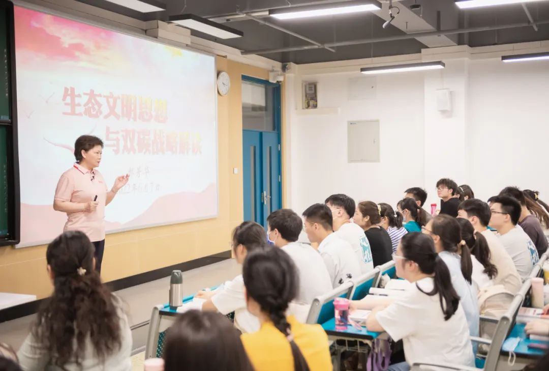 郝芳华校长的授课共分两篇,第一篇是“习近平生态文明思想”,郝芳华校长详细介绍了习近平生态文明思想的发展历程、主要内涵、重大意义及鲜明特色;第二篇是挑起双碳战略的时代担当,郝芳华校长从深刻把握双碳目标的战略意义、我国实现双碳目标的挑战与路径、双碳政策与行动进展、热点与趋势及挑起双碳战略的时代担当等方面对我国双碳战略进行了深入解读,并对同学们未来的生活和工作提出了一些前瞻性的建议。