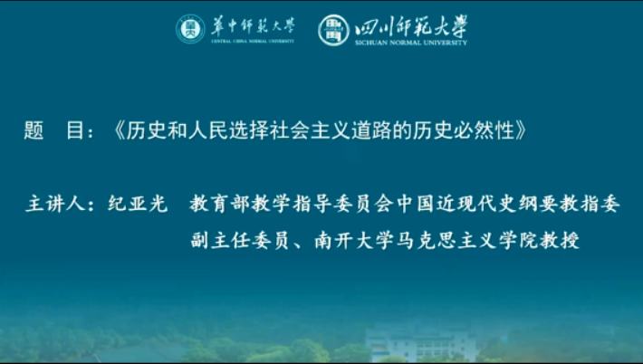 纪亚光教授从宏观的角度作了题为《历史和人民选择社会主义道路的历史必然性》的精彩讲解。纪亚光教授结合十九届六中全会的决议与2021版“纲要”教材分别从侧重历史性呈现、正确把握总基调与总论断、抓住历史关键点、重点呈现历史成就、客观分析问题和错误、总体理解历史和人民选择社会主义的必然性等五个方面,对第八章的教学内容进行了整体的、系统的解读。
