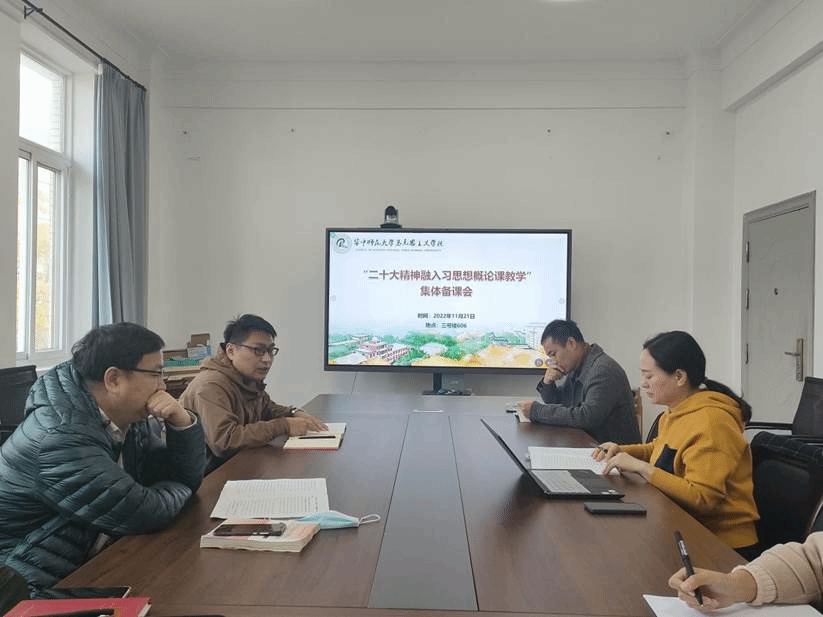 马克思主义学院讯(通讯员 岳曈昕)为深入学习宣传贯彻党的二十大精神,切实推动党的二十大精神进课堂、进头脑,11月21日上午,华中师范大学马克思主义学院习近平新时代中国特色社会主义思想概论教研部举行“党的二十大精神融入课堂教学”集体备课会。教研部部长郭明飞、教研部李哲、董小红、张艳斌、包安、张楠楠参加集体备课会,就党的二十大精神内涵、重难点把握等进行了深入阐述和研讨交流。会议由郭明飞教授主持。