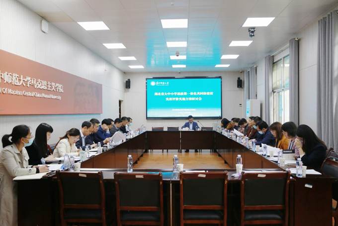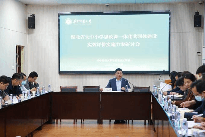 马克思主义学院讯(通讯员 骆贺敏)为深入学习贯彻党的二十大精神,深入推进学习贯彻习近平新时代中国特色社会主义思想主题教育,结合推进湖北省大中小学思政课一体化共同体建设的工作实际,针对湖北省大中小学思政课一体化建设情况开展调研评估和实效评价,建立健全评价指标体系,5月7日上午,华中师范大学作为湖北省大中小学思政课一体化共同体牵头高校,在马克思主义学院三楼报告厅组织召开共同体建设实效评价实施方案研讨会。湖北省部分高校马克思主义学院负责人、大中小学思政课教师代表、思政课教研员参加会议。会议第一阶段、第二阶段分别由华中师范大学马克思主义学院副院长李芳教授、华中师范大学马克思主义学院理论宣传与社会服务部部长徐秉国副教授主持。